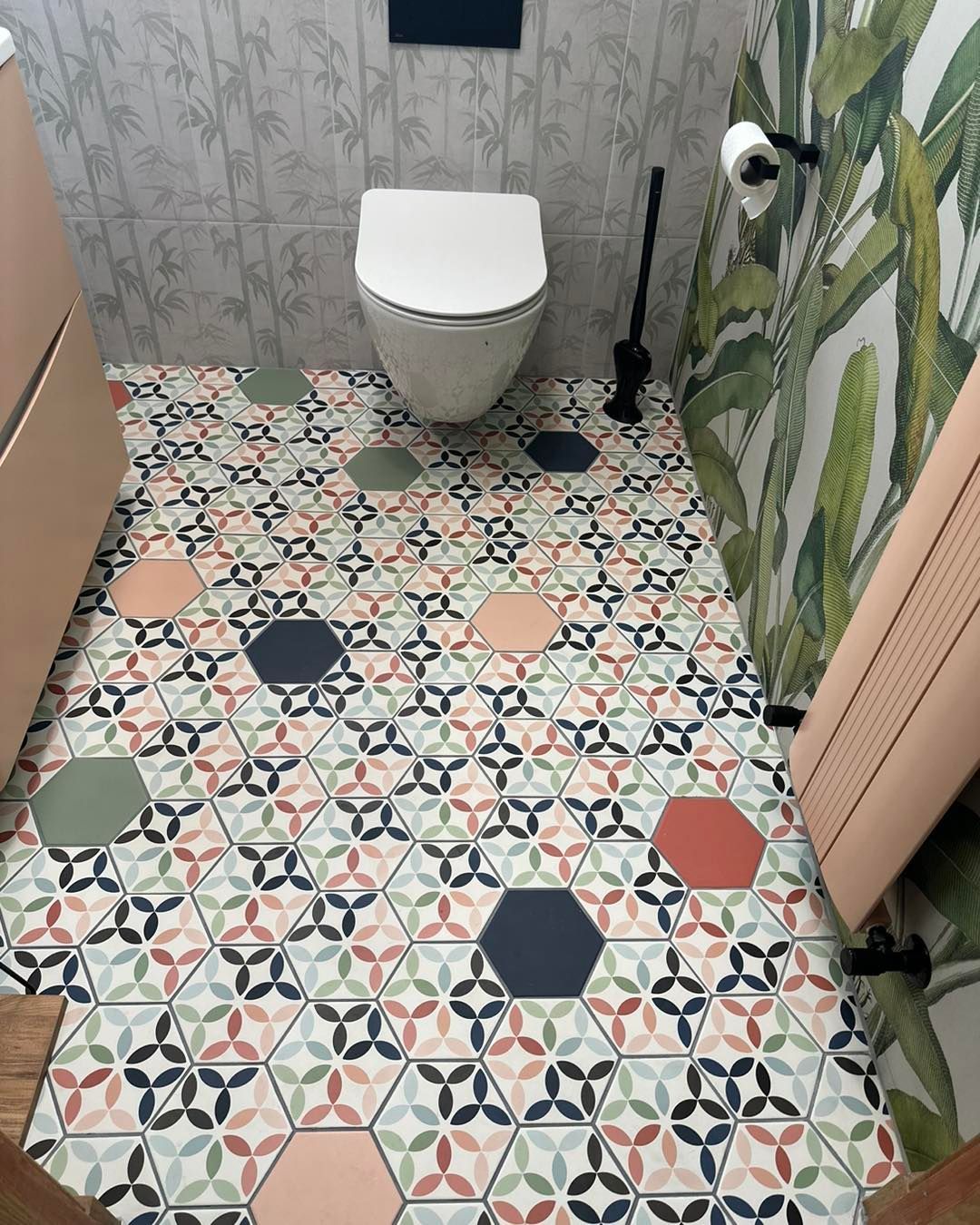 Homeowners want nature brought indoors: oversized sculptural lighting, ceiling-height shower curtains or screens, feature walls with zellige or handmade tiles, and plenty of greenery-friendly layouts.
